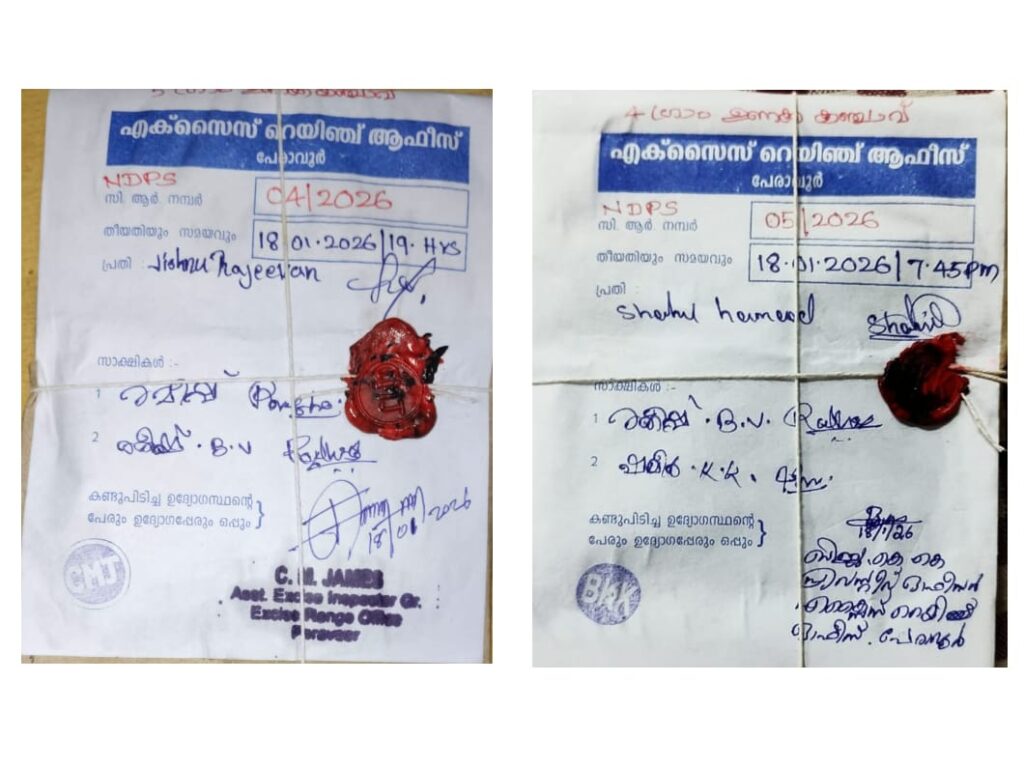 പേരാവൂര് റേഞ്ച് അസി. എക്സൈസ് ഇന്സ്പെക്ടര് സി എം ജെയിംസും സംഘവും അടക്കാത്തോട് നരിക്കടവ് ഭാഗത്ത് നടത്തിയ പരിശോധനയില് 5 ഗ്രാം കഞ്ചാവ് കൈവശം വെച്ച കണിച്ചാര് സ്വദേശിയായ യുവാവിനെ പിടികൂടി എന്ഡിപിഎസ് ആക്ട് പ്രകാരം കേസെടുത്തു.കണിച്ചാര് കിഴക്കേപ്പുറത്ത് വീട്ടില് ജിഷ്ണു രാജീവനാണ് 5 ഗ്രാം കഞ്ചാവുമായി പിടിയിലായത്.തുടര്ന്ന് എക്സൈസ് പ്രിവന്റീവ് ഓഫീസര് കെ കെ ബിജുവും സംഘവും അടക്കാത്തോട് മുട്ടുമാറ്റി ഭാഗത്ത് നടത്തിയ പരിശോധനയില് 4 ഗ്രാം കഞ്ചാവ് കൈവശം വെച്ച അടക്കാത്തോട് സ്വദേശിയായ യുവാവിനെ പിടികൂടി എന്ഡിപിഎസ് ആക്ട് പ്രകാരം കേസെടുത്തു.